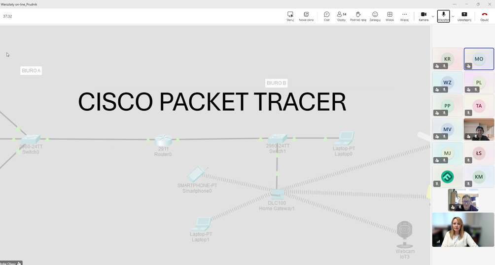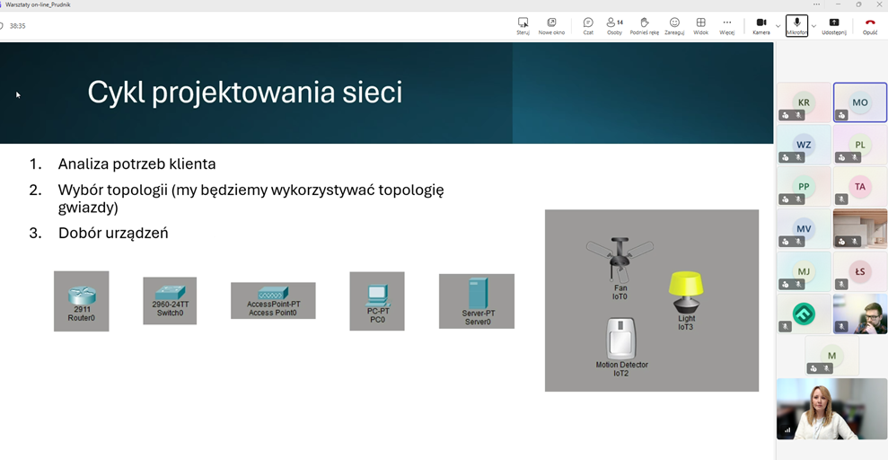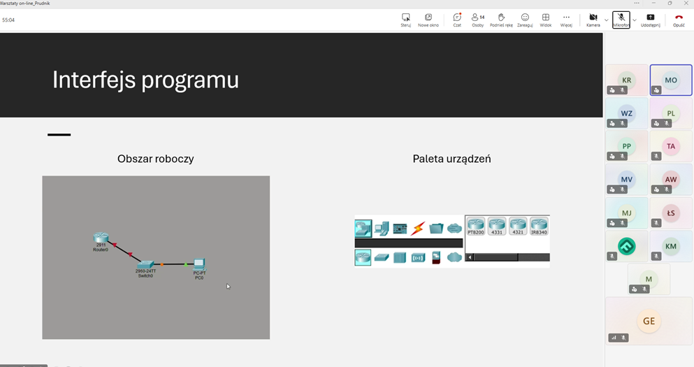 Pierwszy dzień zajęć był poświęcony zagadnieniom związanym z tworzeniem oraz konfiguracją sieci komputerowych. Uczestnicy pracowali w programie Cisco Packet Tracer, który umożliwia projektowanie i testowanie działania sieci w środowisku symulacyjnym. Dzięki temu mogli poznać podstawowe zasady budowy sieci oraz przećwiczyć ich konfigurację w praktyce.